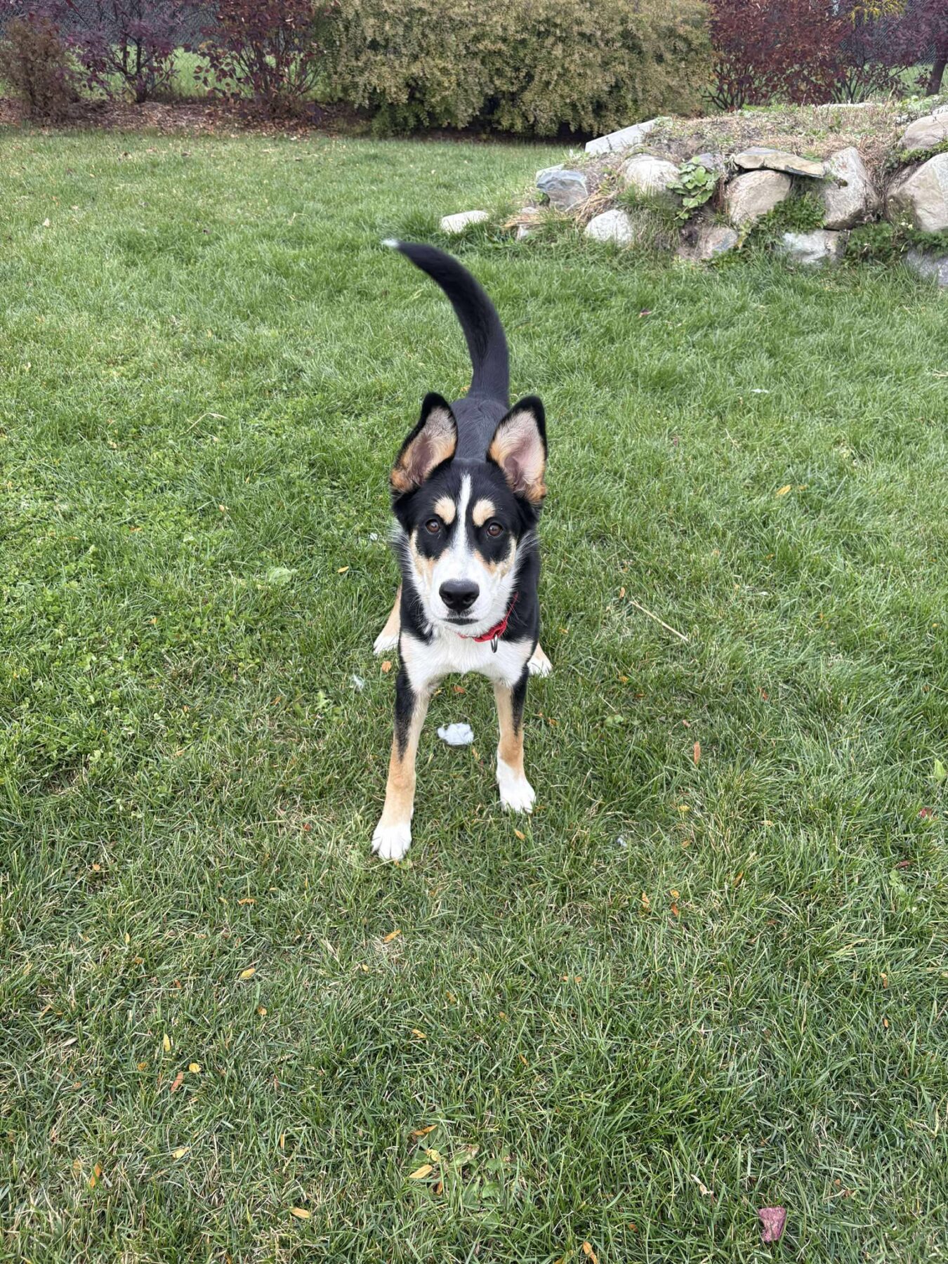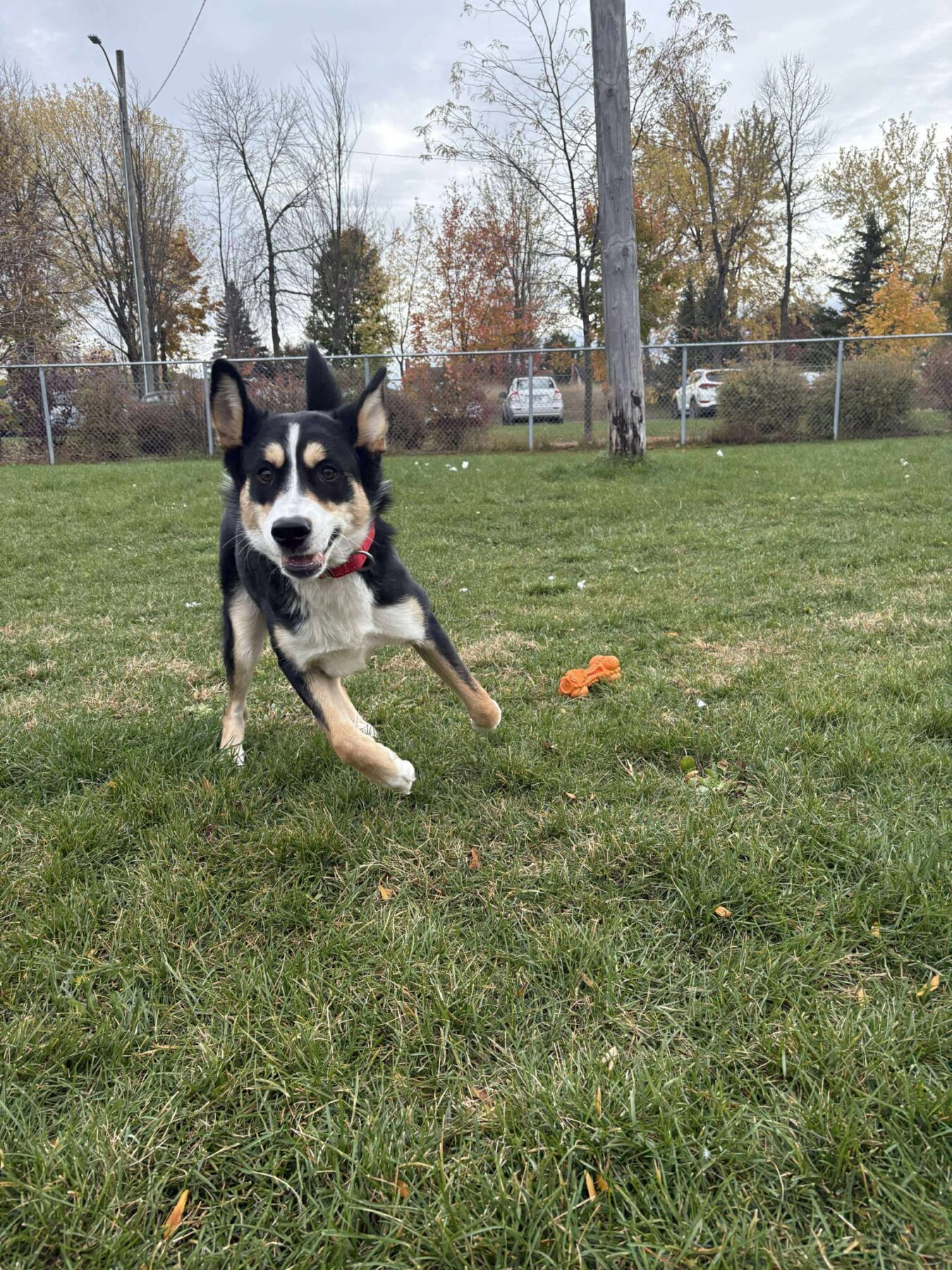 Je suis une jeune chienne pleine d’énergie, de joie et de vie — une vraie ado-chien dans toute sa splendeur! Je croque la vie (et parfois un peu tout le reste) à pleines dents! Sous cette avalanche d’enthousiasme se cache une immense boule d’amour et de gentillesse. J’adore les humains, le jeu, les câlins… et tout ce qui implique de l’action! Disons simplement que je n’ai pas encore tout à fait appris à doser mes élans affectueux: sauter dans vos bras pour dire bonjour fait partie de mon répertoire préféré.