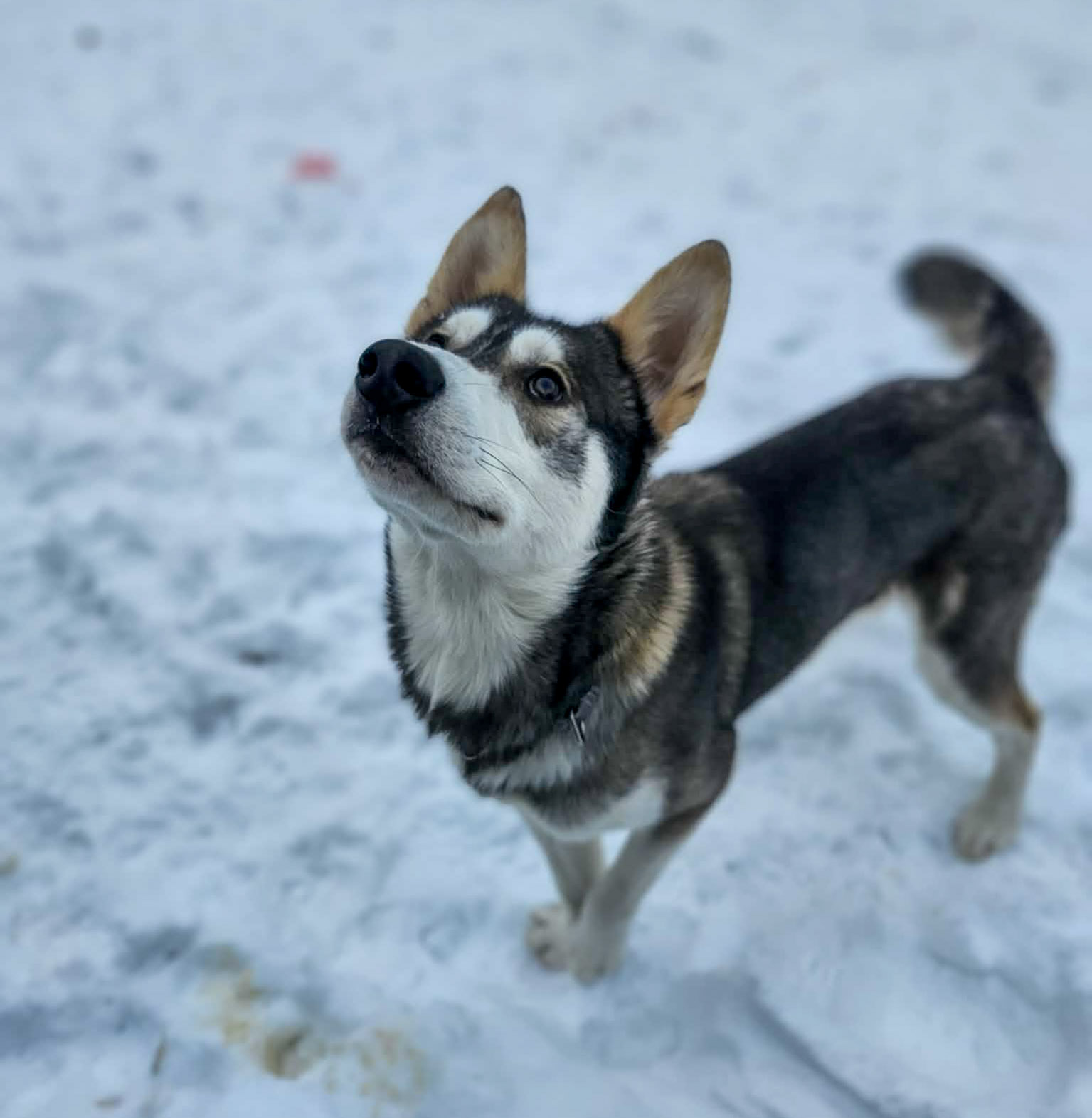 Je suis un gentleman et un conquérant téméraire, amoureux et confiant. À la fois doux, curieux, intrépide et plein d’énergie, je répond à ma génétique de chien nordique en démontrant un esprit libre, doué pour la résolution de problèmes et adepte d’aventure et de grand air. Toutefois, il est important de savoir que je n’apprécie pas particulièrement être laissé seul, et c’est là que je sors mes plus belles démonstrations de vocalises. Reste à voir si cela persiste en dehors du refuge et si c’est un enjeu qui doit être adressé avec l’aide de professionnels, mais en attendant, sur la majorité des autres aspects, je suis tout ce à quoi on s’attendrait d’un jeune husky comme moi : mesquin, fanfaron, pisteur, enjoué, affectueux et une petite boule d’énergie!