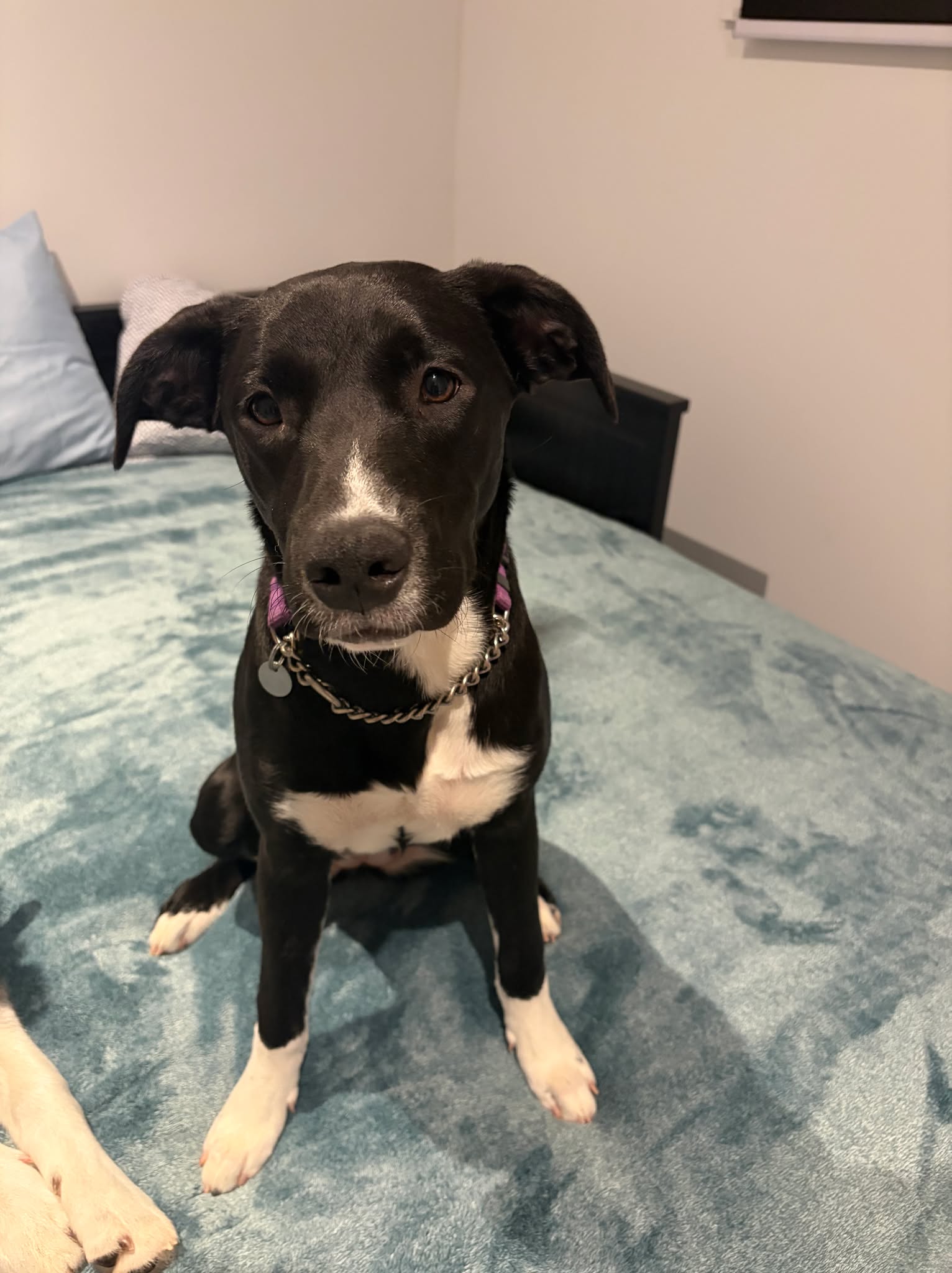 me guider pas à pas. Je m’épanouirai sans doute aux côtés d’un autre chien bien codé, capable de me montrer que le monde n’est pas si dangereux que je le crois. C’est une période charnière pour moi : à six mois, j’ai tout l’avenir devant moi, et avec les bons humains à mes côtés, je pourrai transformer mes petites peurs en belles réussites. Je suis active, joueuse, et adore les câlins. Mon endroit préféré? Le lit ou le divan, évidemment! J’ai encore quelques apprentissages à faire — notamment la propreté et la gestion de mes