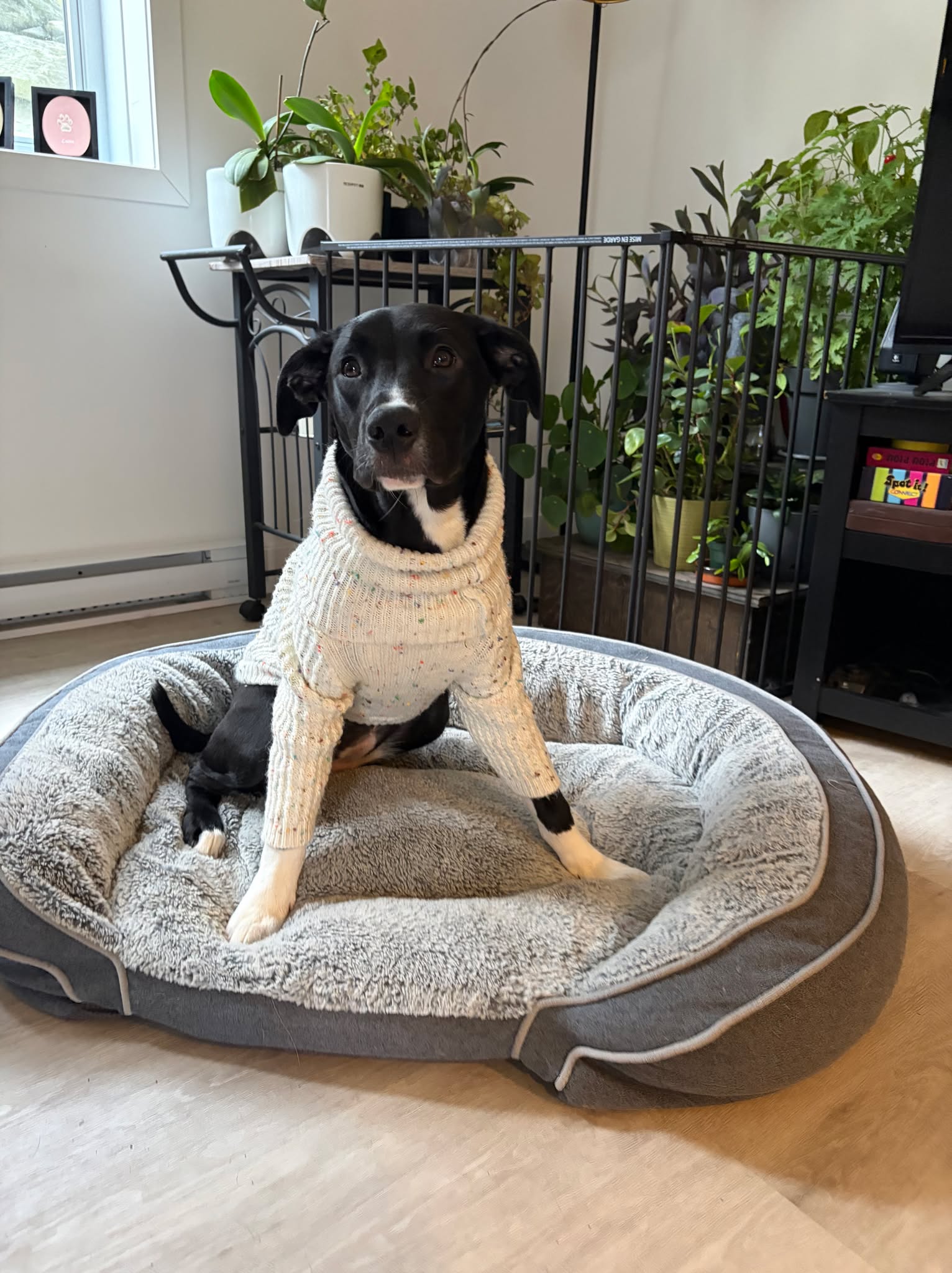 réfugiée sous un bureau pendant plusieurs jours, effrayée par tout ce qui bougeait autour de moi. Heureusement, ma merveilleuse famille d’accueil, et leur chienne Balam, ont su me redonner confiance. J’ai un tempérament anxieux: je découvre encore la vie et tout est nouveau (et parfois un peu effrayant) pour moi. J’aurai donc besoin d’une famille douce, calme et patiente, qui saura me guider pas à pas. Je m’épanouirai sans doute aux côtés d’un autre chien bien codé, capable de me montrer que le monde n’est pas si dangereux que je le crois. C’est une période charnière pour moi : à six mois, j’ai tout l’avenir devant moi, et avec les bons humains à mes côtés, je pourrai transformer mes petites peurs en belles réussites. Je suis active, joueuse, et adore les câlins. Mon endroit préféré? Le lit ou le divan, évidemment! J’ai encore quelques apprentissages à faire, notamment la propreté et la gestion de mes pulsions de poursuite (autos, vélos, écureuils… tout y passe). Je n’aime pas beaucoup la solitude et préfére une famille présente, qui saura m’accompagner avec bienveillance. J’ai déjà côtoyé un chat et pourrais donc bien m’adapter à une cohabitation féline, tant que les présentations sont bien faites. Par contre, une maison calme sans jeunes enfants me conviendra beaucoup mieux.