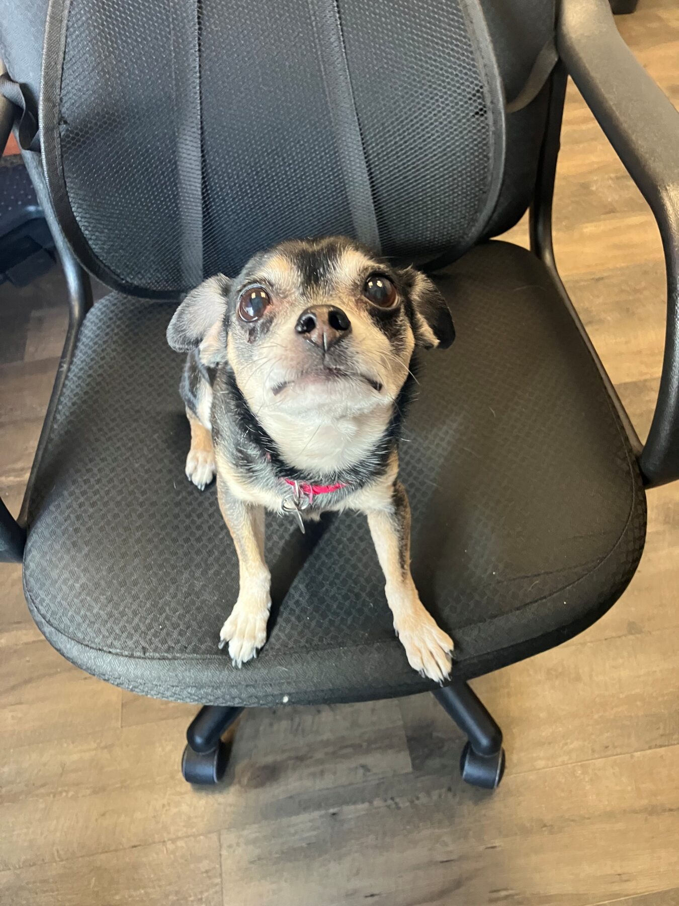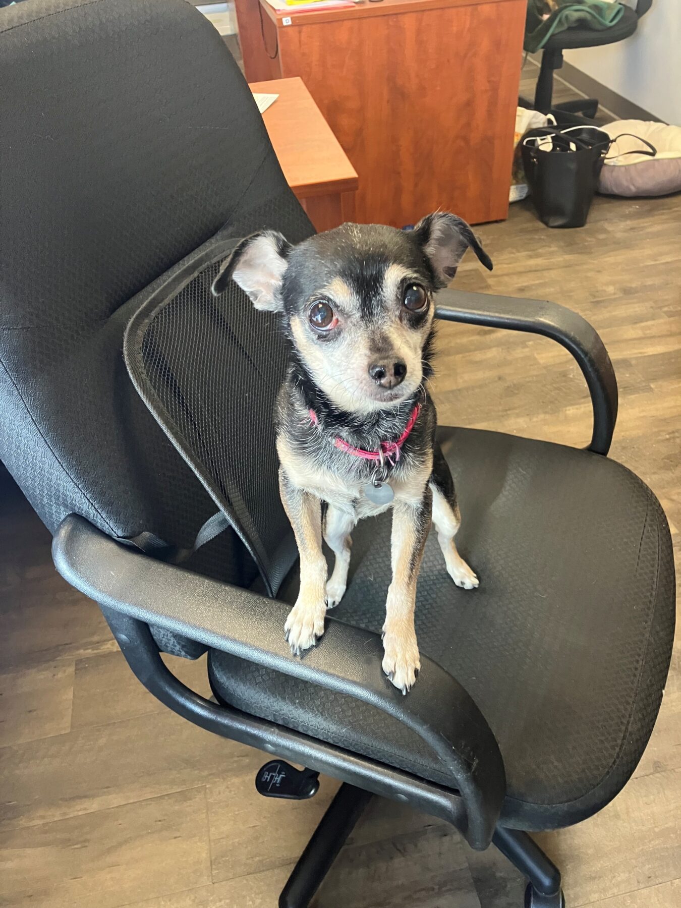 Mon endroit préféré au monde? Tout contre un humain. Sur vos genoux, collée à votre hanche, blottie sous votre bras… tant que je suis près de vous, je suis comblée. Malgré mon format miniature et mon statut de petite mamie, je déborde d’affection. Je suis douce, je cherche le contact et j’accueille chaque nouvelle personne avec bienveillance. Pas de drame, pas de grandes exigences: simplement le bonheur d’être en compagnie d’humains. Je ferais le bonheur d’une personne ou d’une famille qui a envie d’un lien proche, d’une présence rassurante et constante. Comme toute chienne âgée, je mérite un foyer prêt à m’offrir confort, douceur et stabilité pour ses belles années à venir.