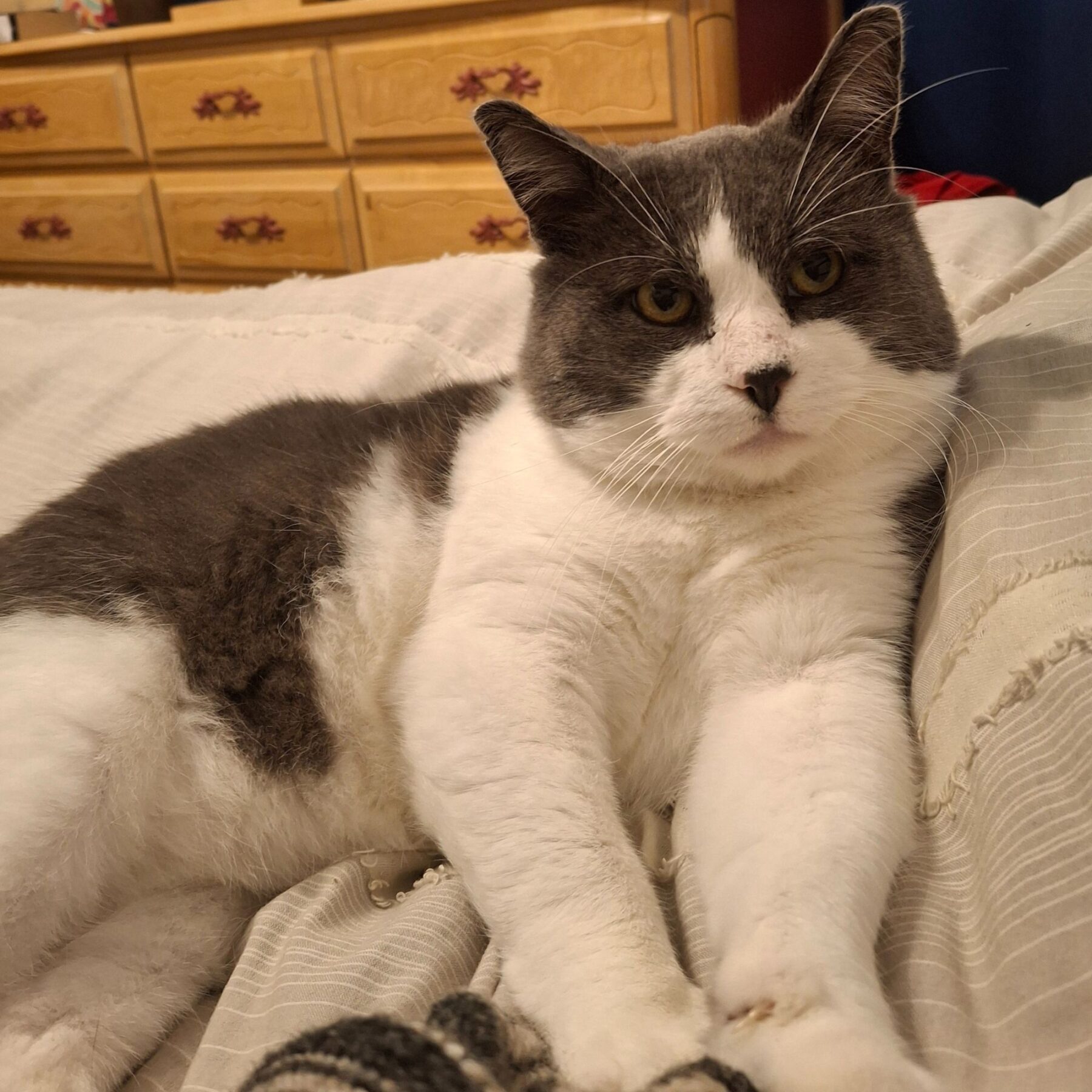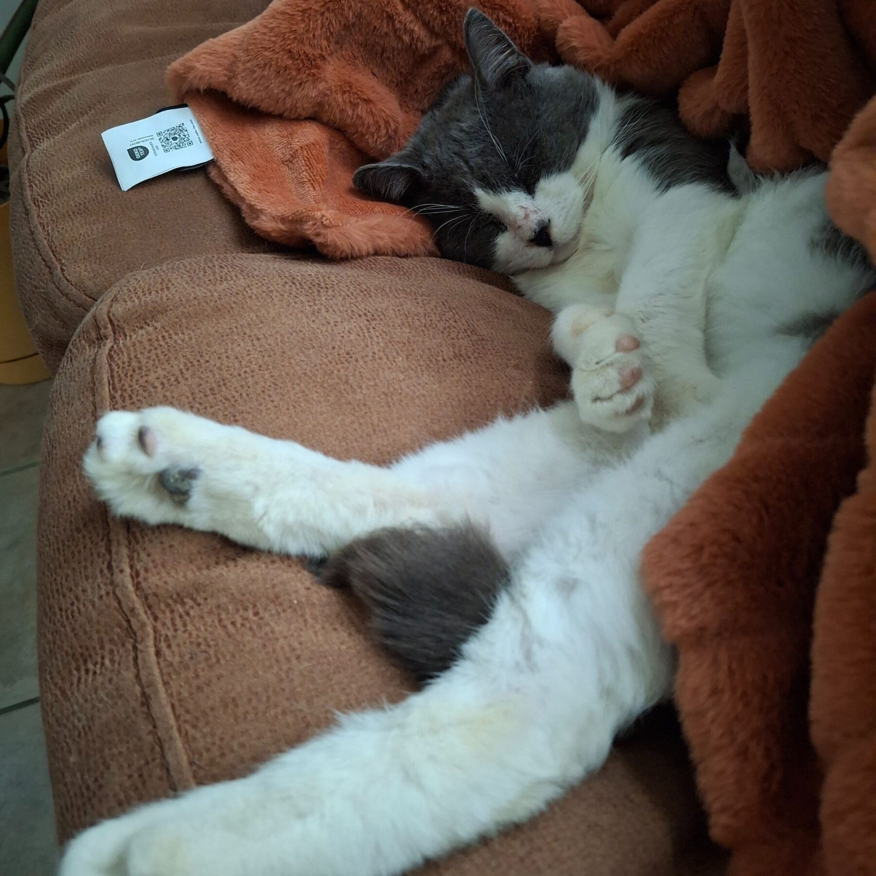 Salut, moi c’est Sipedon, Sippy pour les intimes. Je suis un chat super calme qui adore les caresses et les longues siestes sur les canapés ou dans mon petit panier. Je suis très craintif au premier abord, mais quand je te fais confiance, tu recevras plein de ronrons. J’aime ma tranquillité, alors je préfèrerais être dans un foyer calme. J’ai vraiment hâte de rencontrer ma famille pour la vie. Petit bonus : je ne miaule pas trop et je ne dérange pas la nuit.