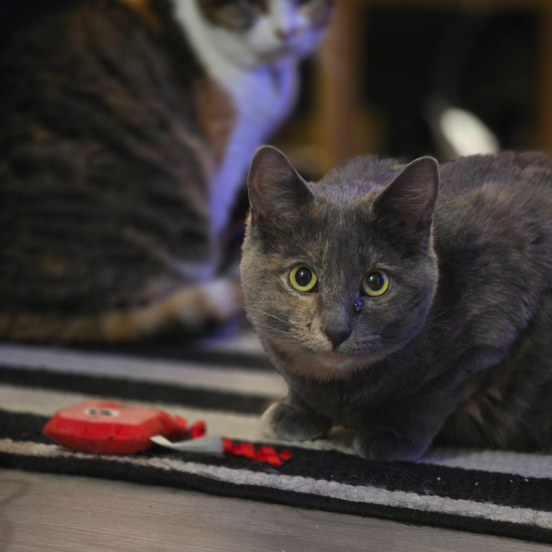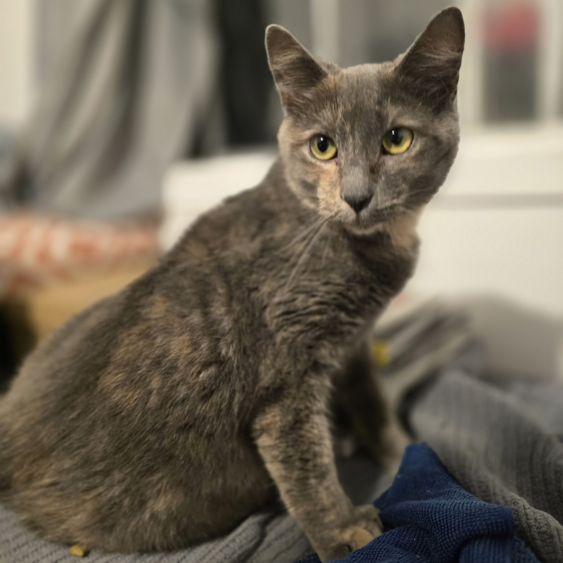 Ti-mousse est présentement en famille d’accueil et cohabite avec deux autres chats.